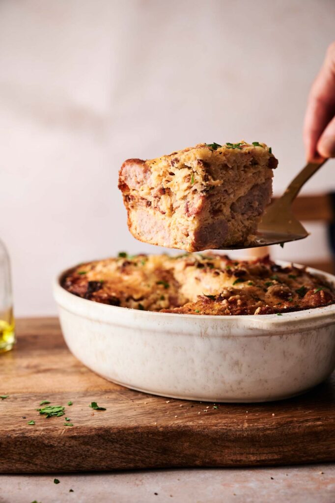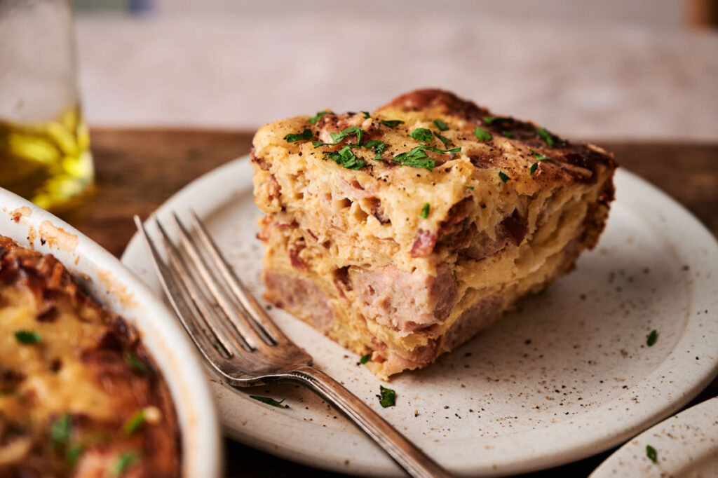 - Let cool slightly before slicing. Serve warm for a hearty, crowd-pleasing breakfast.