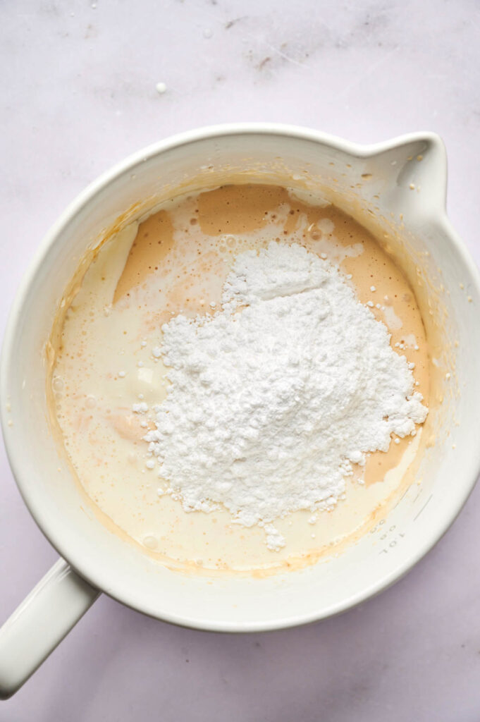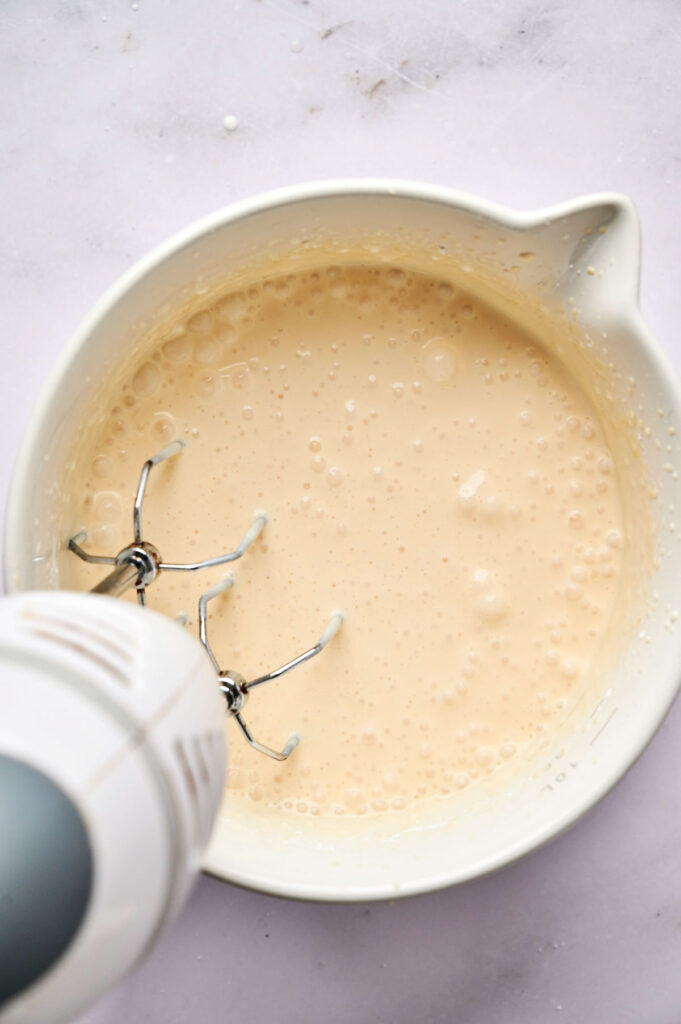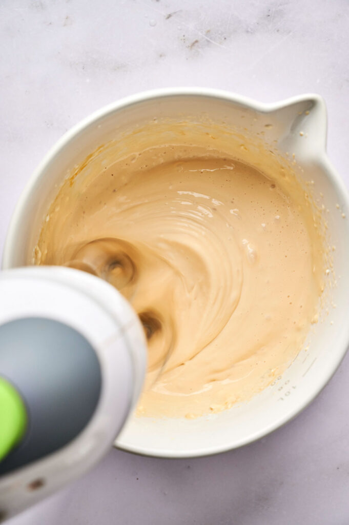 • Don’t overmix the batter: Mixing too much adds air and can cause cracks during baking. Stop when it’s just combined.