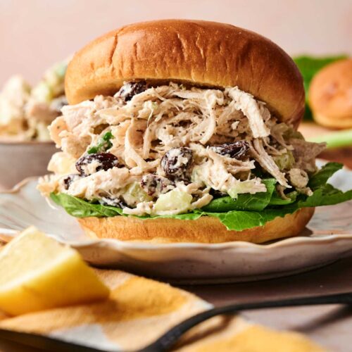 I don’t recommend freezing this recipe since it may lose its crunch and become watery, and the mayo can separate once thawed. You can only freeze the cooked chicken for up to 3-4 months and defrost it in the fridge once you’re ready to assemble the salad sandwich and serve it fresh.