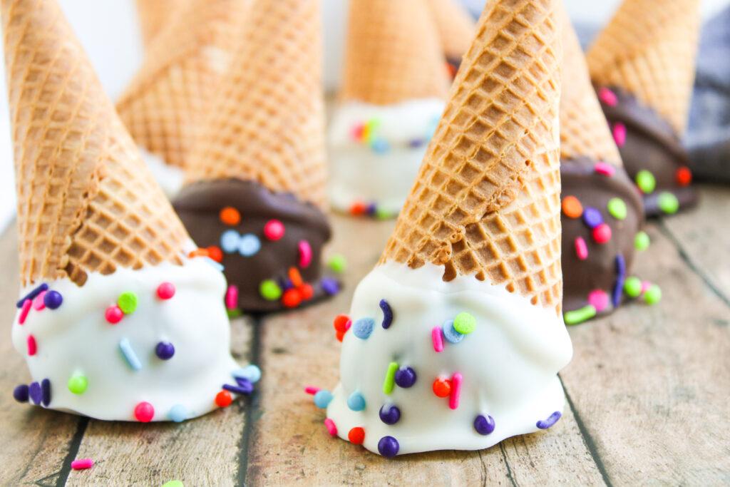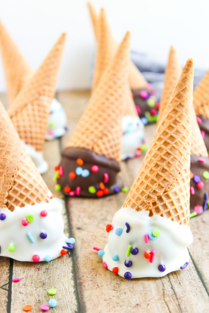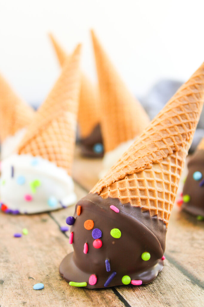 They’ll keep well for up to 3 months. Just thaw them overnight in the fridge before serving, and note that the cones might lose a little crunch in the fridge or freezer, but they’ll still taste great and hold their shape.