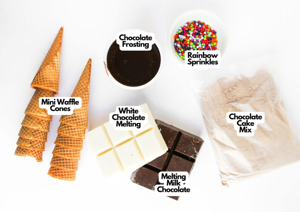 - Dip the open end of each waffle cone into melted chocolate, then press gently onto a cake ball. Let them set until firm.12-14 mini waffle cones