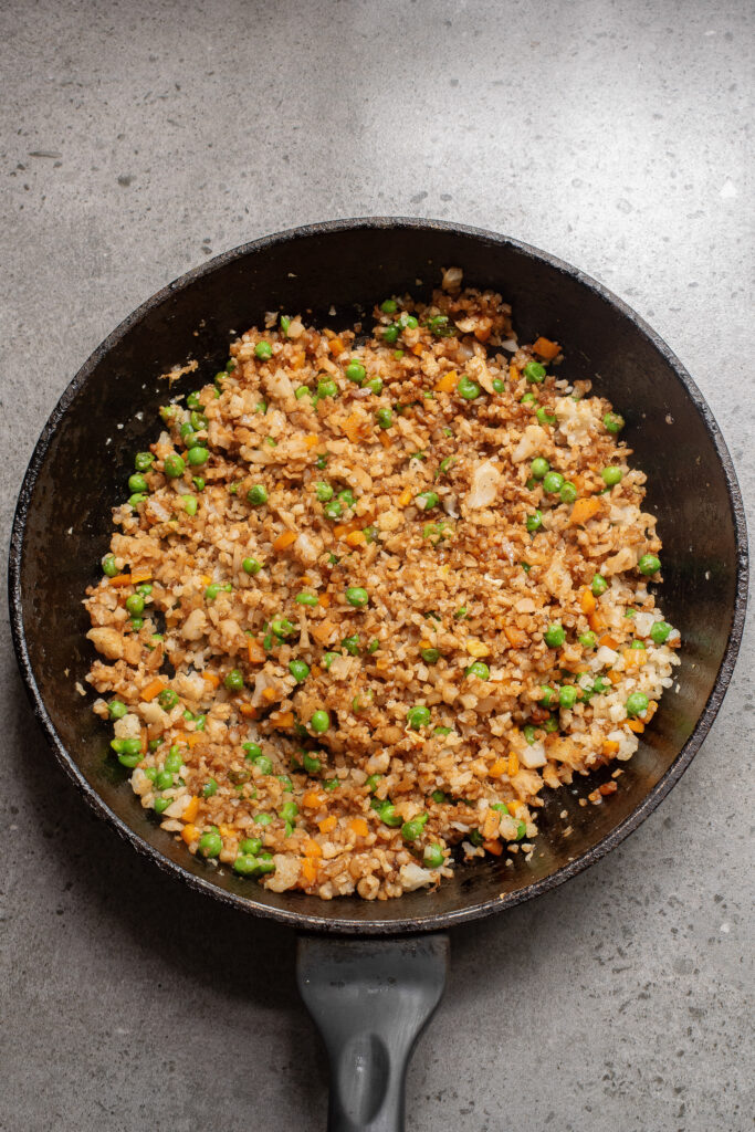 - Use Dry Cauliflower Rice: If you’re using frozen cauliflower rice, make sure to thaw it first and drain it well. Excess moisture can lead to a soggy, steamed texture instead of a stir-fried feel. A quick press through a fine-mesh strainer like this one helps get rid of extra water fast.