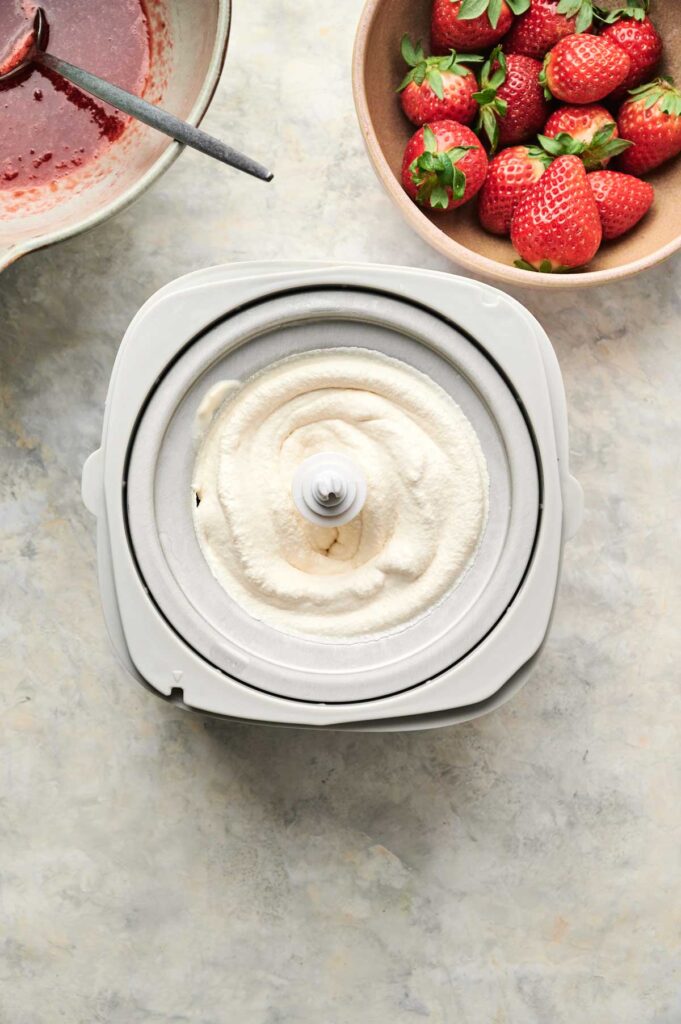 - Fully Freeze the Bowl: Your ice cream maker bowl should be frozen solid for 24 hours—shake it and you shouldn’t hear anything move. If it’s not cold enough, the mixture won’t churn properly.